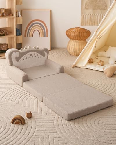 Blissful Diary Foldable Toddler Couch, 2-in-1 Comfy Toddler Chair & Lounger for Reading, Nap, Playroom, Kids Couch Sofa for 1 2 3+ Year Old Girls Boys Baby Birthday Gift, Gray Shell