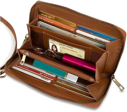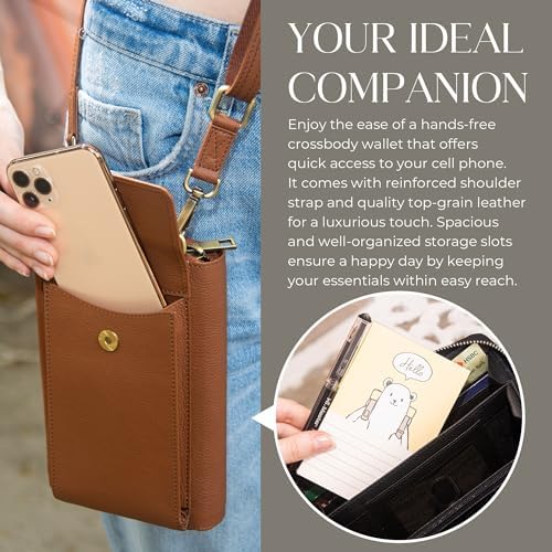 Crossbody Leather Wallet Phone Purse, Anti Theft and RFID Blocking, Small Elegant Design for Travel