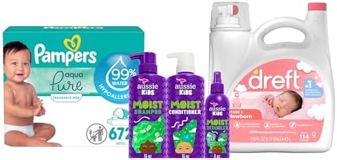 Baby Care Bundle of Pampers Baby Wipes + Dreft Baby Laundry Detergent Liquid + Aussie Kids Hair Care Set