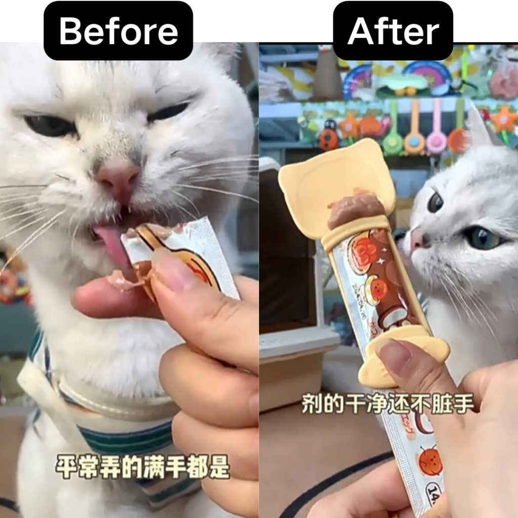 Quality:good Suitability:good Appearance:good Bought one earlier and found it super useful. The front part can be pressed down like a seal for opened stick puree treats. The spoon is great for preventing my greedy cats from biting through the pack and potentially the fingers of my visitor feeders haha