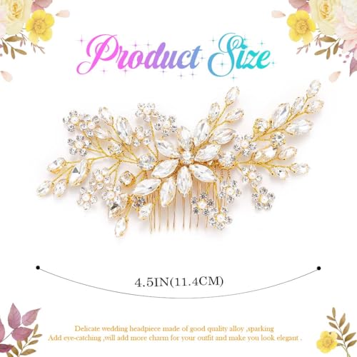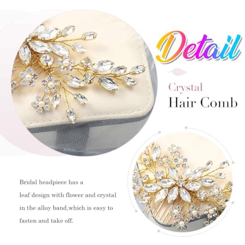 Catery Flower Crystal Bride Wedding Hair Comb Hair Accessories with Pearl Bridal Side Combs Headpiece for Women (Gold)