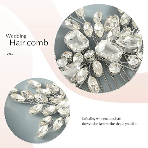 Catery Crystal Bride Wedding Hair Comb Silver Side Combs Bridal Hair Piece Clips Headpiece Hair Accessories for Women and Girls