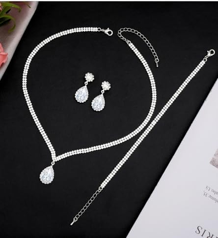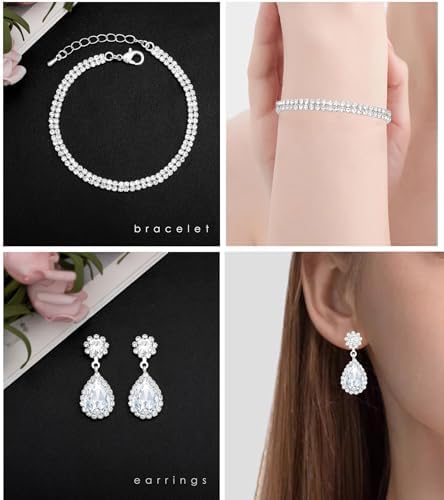 Sponsored Ad - Elegant Silver Crystal Wedding Necklace Earrings Bracelet Jewelry Set for Women Brides Bridesmaids Prom Party Costume Accessory Bridal Jewelry