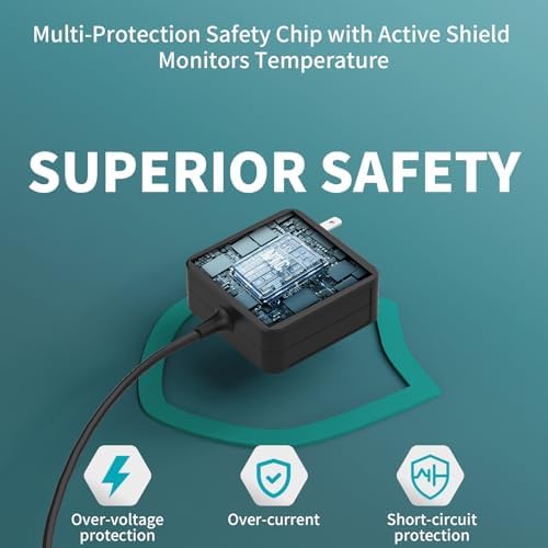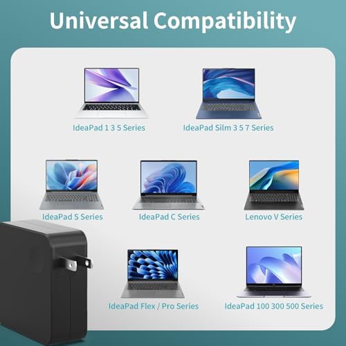Charger for Lenovo Laptop 65W/45W, Round Tip AC Adapter for IdeaPad 1/3/5, Slim 3/5/7, Flex/Pro Series, S/C Series, Fast Charging, Overheat Protection, Longer Cable for Office, Travel, and Home Use