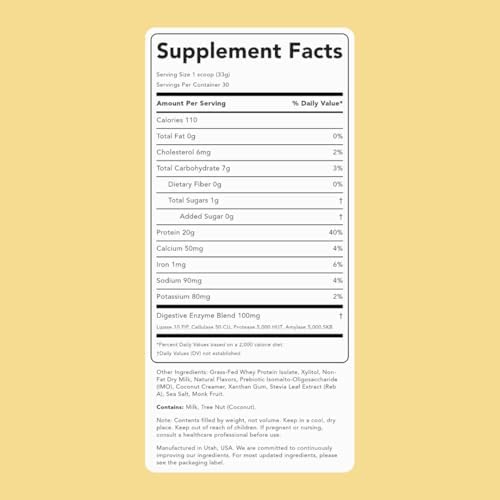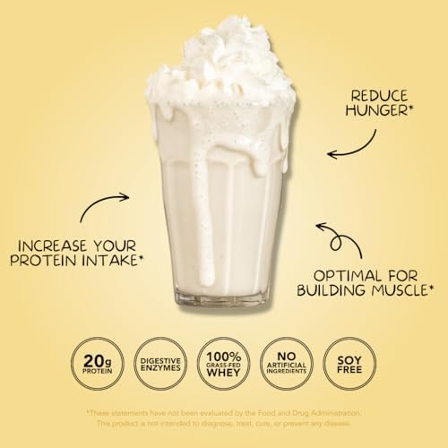Clean Simple Eats Whey Protein Powder, Simply Vanilla Flavor Naturally Sweetened, 100% Grass Fed Protein Powder with Digestive Enzymes & No Artificial Ingredients, Gluten Free, 30 Servings