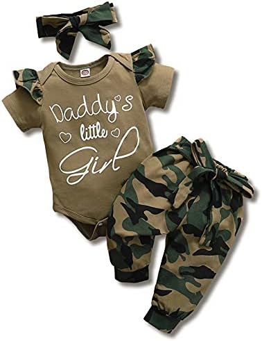 Baby Girl Clothes Set Daddys Little Girl Ruffle Romper Top Camouflage Pants Newborn Infant Baby Girl Outfit