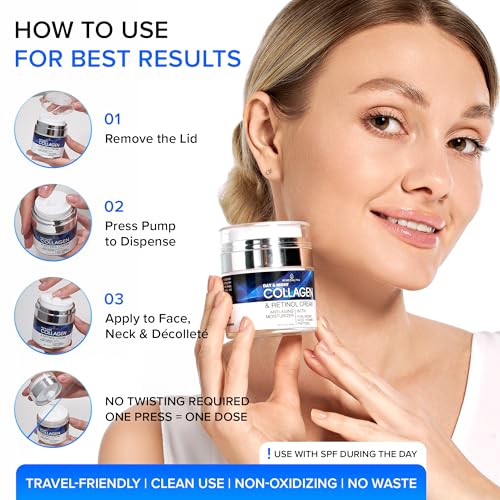 Collagen Face Cream with Retinol & Hyaluronic Acid – Anti Aging Moisturizer for Women & Men, Firming Day & Night Cream for Wrinkles, Hydrating Facial Lotion for All Skin Types