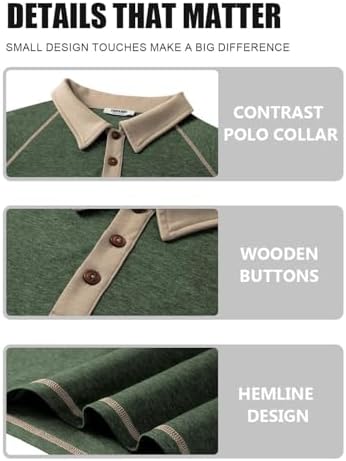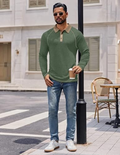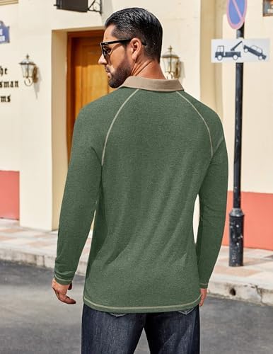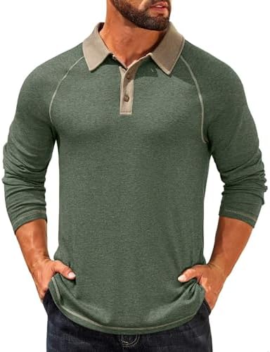 Mens Long Sleeve Polo Shirts Casual Button Collared Shirts Raglan Golf T Shirt