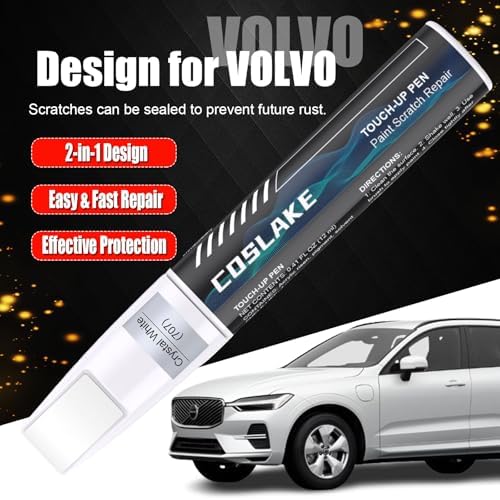 Car Touch Up Paint(Crystal White(707)) for Volvo, Car Paint Scratch Repair Kit, Quick & Easy Solution to Repair, 2 in 1 Scratch Remover Pen with 2PCS Disposable Micro Applicators