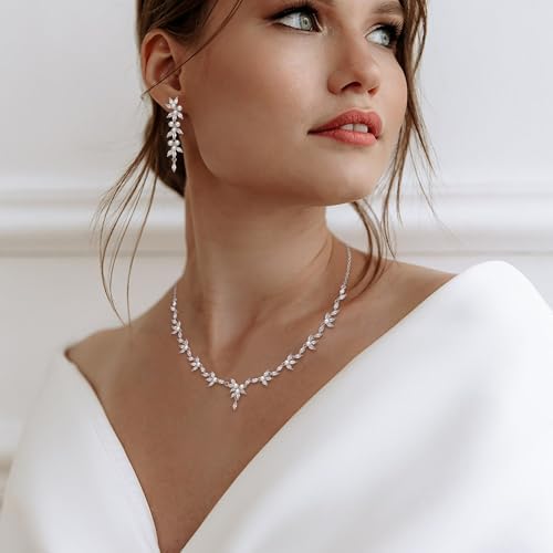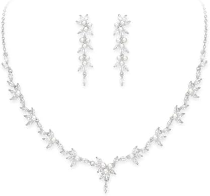 Sponsored Ad - Crysdue Wedding Jewelry Sets for Women Bride Bridesmaid, Elegant Simulated Pearl Cubic Zirconia Cluster Long Dangle Earrings Pendant Necklace for Prom Party Pageant