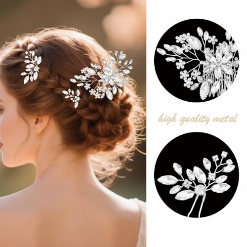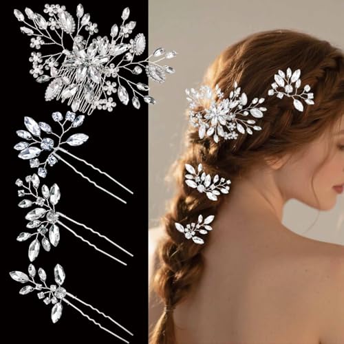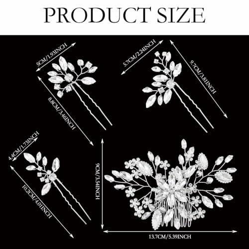 Sponsored Ad - 4Pcs Crystal Wedding Hair Comb Rhinestone Bridal Hairpins for Bride Bridesmaids Flower Girls Wedding Party Hair Accessories