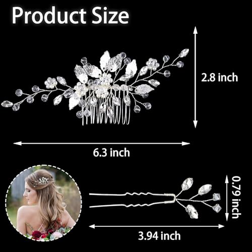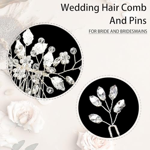 Crystal Wedding Hair Accessories - Hair Comb with Rhinestone Hair Pins and Pearls for Bride, Bridesmaids, Flower Girls (Silver)