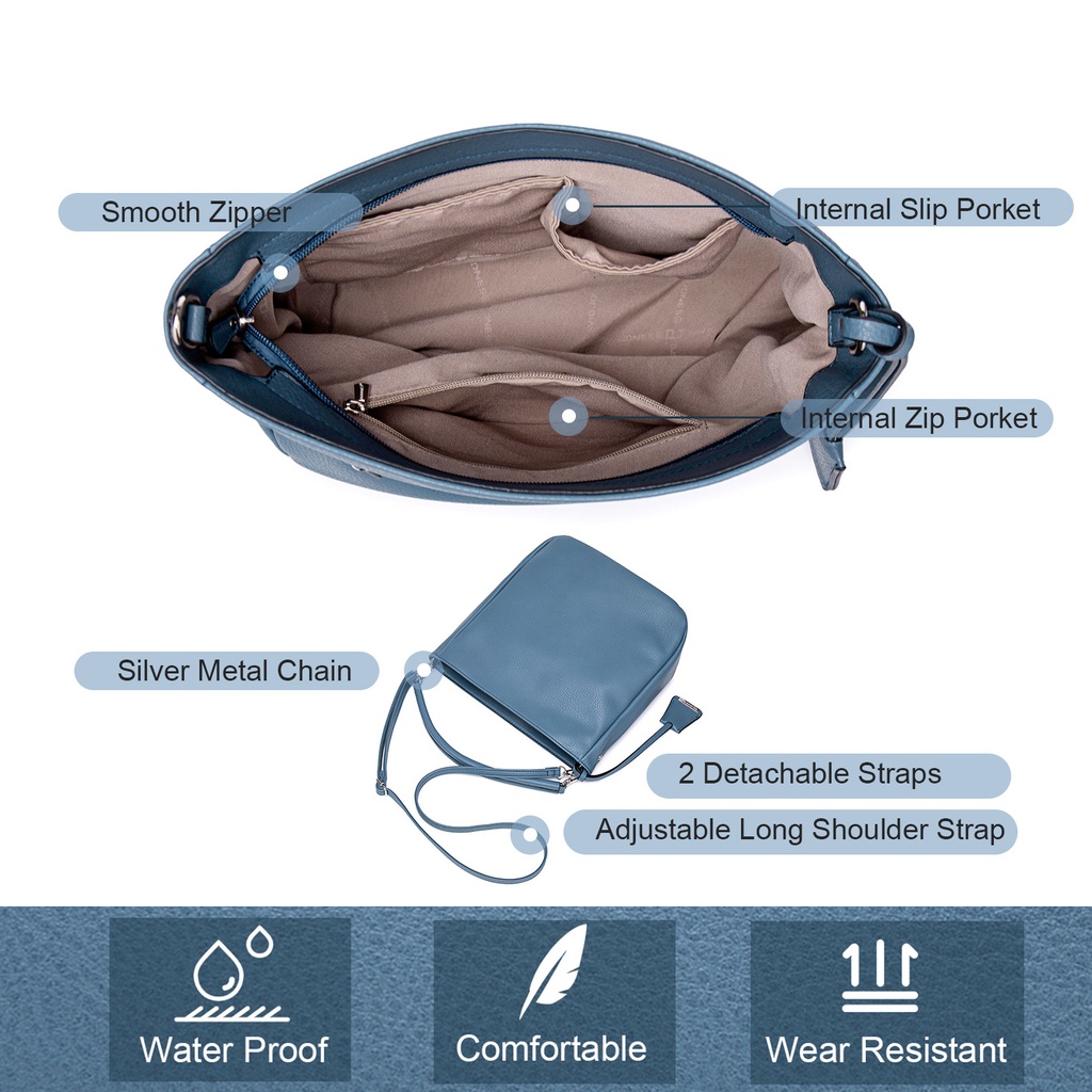 Suitable Occasion:work+outing Suggested Look:bluish nice! Good quality bag. About 90% good condition+ material. The buckles are easy to interchange. Compartment good for water bottles+umbrella+ sweater.