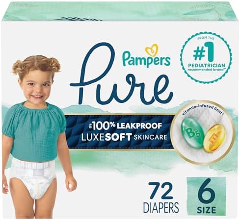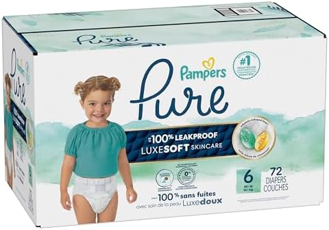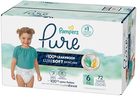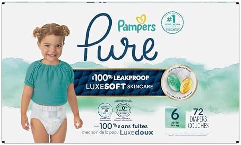 Baby Diapers - Pure Protection - Size 6, 72 Count, for up to 100% Leakproof, Premium Plant-based Skin Protection