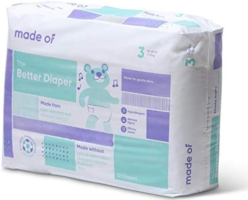 The Better Baby Diapers - Hypoallergenic Diapers for Sensitive Skin, Unscented, 10 Hour Absorbency - Pediatrician and Dermatologist Tested - Size 3 (32 Count)