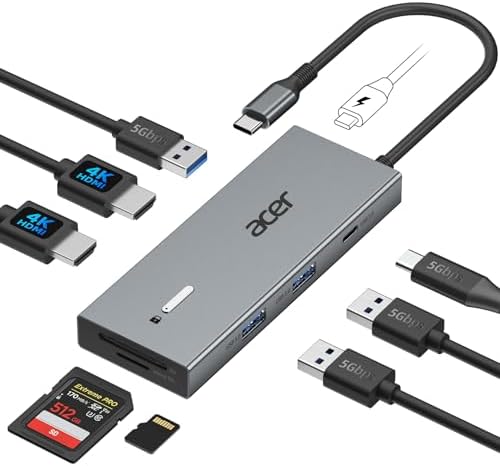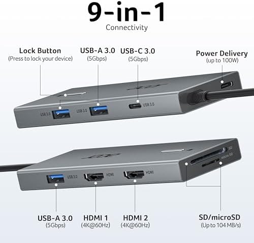 USB C Docking Station Dual Monitor with 2 HDMI, 9-in-1 Laptop Docking Station with 4K@60Hz HDMI, USB A&C 3.0, SD/Micro SD, 100W PD, USB C Dock Compatible with Acer/Dell XPS/HP/Mac/Surface etc