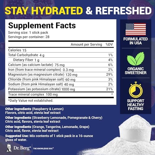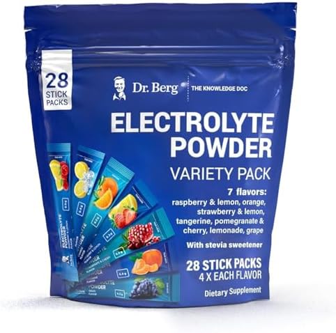 Dr. Berg Sugar Free Electrolyte Powder Packets (Variety Pack) - Daily Electrolyte Drink Mix - 28 Total Hydration Pouches Sugar Free - Keto Electrolytes Powder Packets No Sugar - 7 Delicious Flavors