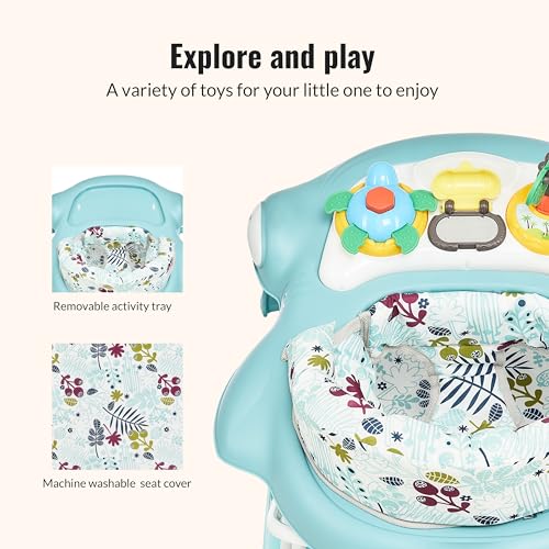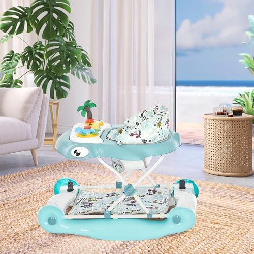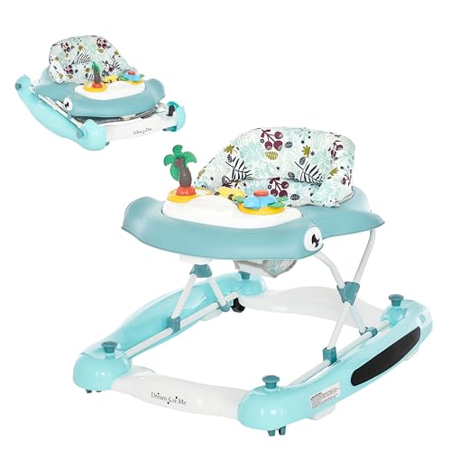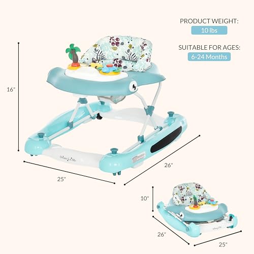 Dream on Me 2-in-1 Aloha Fun Baby Walker in Blue, Easily Convertible Baby Walker, Adjustable Three Position Height Settings, Easy to Fold and Store
