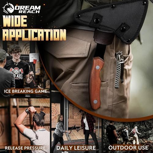 Dream Reach Professional Throwing Axe Set – 3-Pack High-Carbon Steel Throwing Axes Throwing Game for Backyard with Sheaths and Ergonomic Handles for Competition and Recreation