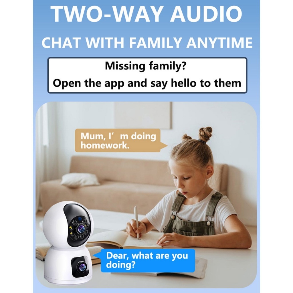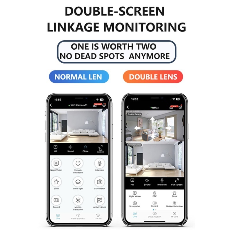 Dual Lens -dual screens CCTV home security camera  Indoor 3MP 2K Two Way Talking Camera Phone Control Built-in Microphone