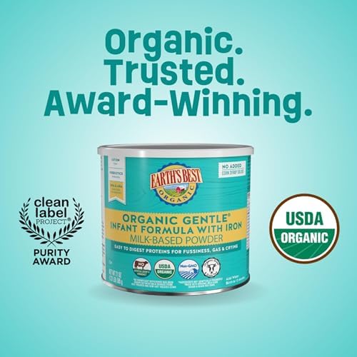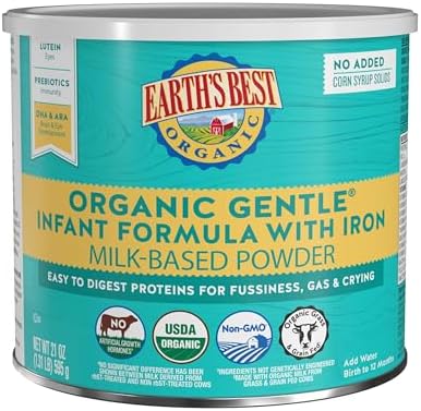 Organic Gentle Infant Formula for Babies 0-12 Months, Milk-Based Powder Formula with Iron, Omega-3 DHA, and Omega-6 ARA, 21 Ounce Container