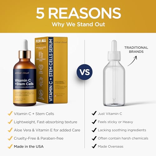 Sponsored Ad - Vitamin C Serum for Face with Stem Cells Hyaluronic Acid Vitamin E Aloe Vera For All Skin Types Anti-Aging Face Seru Supports Skin Health & Even Tone Day and Night Made in USA 1 Oz