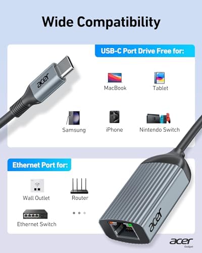 USB C to Ethernet Adapter, Plug and Play RJ45 to Type C Network Dongle(Thunderbolt 3/4 Compatible), 1Gbps Aluminum USB-C LAN Adapter for Laptop, MacBook Pro/Air, iPad Pro, iPhone 15/16, Dell XPS