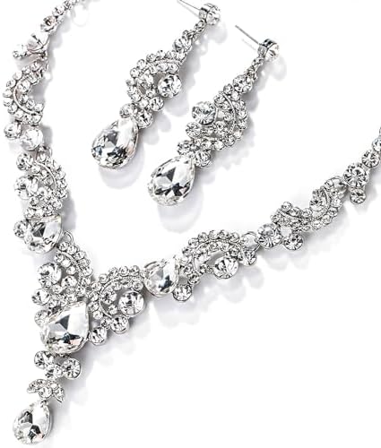 EVER FAITH Rhinestone Crystal Bridal Floral Wave Teardrop Necklace Earrings Set