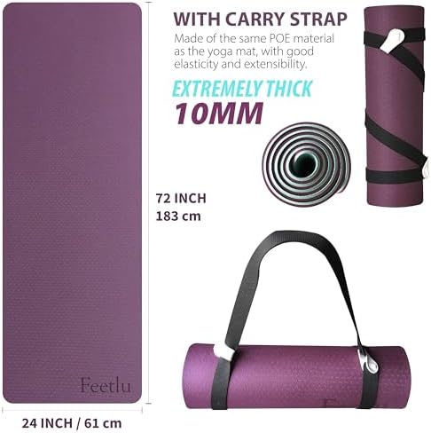 Sponsored Ad - Extra Thick Exercise Yoga Mat with Strap - 2/5 Inch (10MM), Non-Slip Workout Mat for Yoga, Pilates, and Floor Exercises