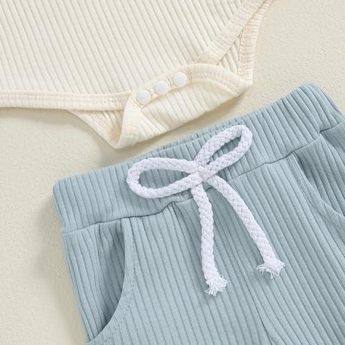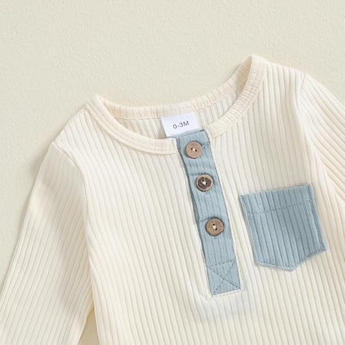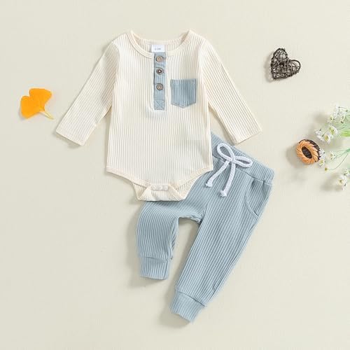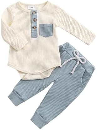 Baby Boy Clothes 3 6 12 18 Months Ribbed Knitted Long Sleeve Romper and Pants Sets Newborn Fall Splicing Color Outfits