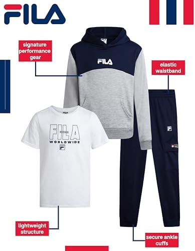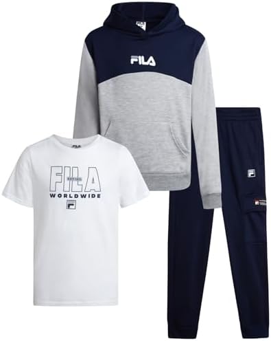 Boys' Active Sweatsuit Set - 3 Piece Performance Hoodie Sweatshirt, Jogger Sweatpants, T-Shirt - Activewear Set (8-12)