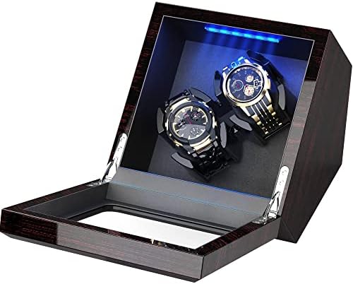 High End Watch Winder for Automatic Watches with Super Quiet Motor, Blue LED Light & Rotation Mode Setting, Watch Winder for Rolex with Flexible Pillow, Dual Power
