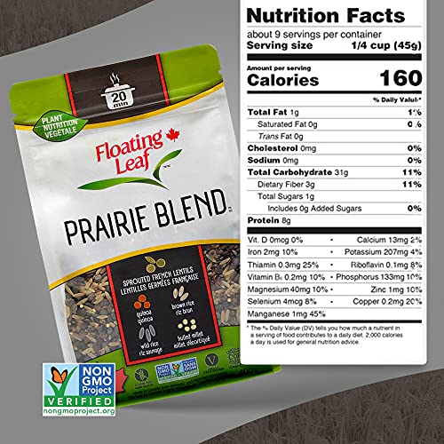 1 Pack x 14 ounces Prairie Blend, Brown Rice, Wild Rice, Hulled Millet, and Sprouted French Lentils and Quinoa, Non Gluten, Non-Gmo, Kosher and Vegan - Floating Leaf