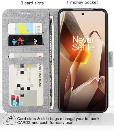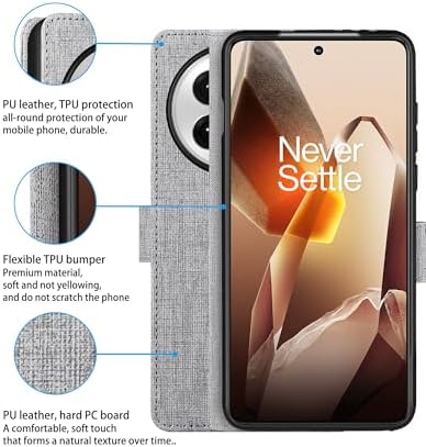for OnePlus 13 Wallet Case, PU Leather Flip Folio with [Shockproof TPU Inner Case], Kickstand Card Slots Ultra Slim Strong Magnetic Closure Cover for OnePlus 13 5G 2025 (Gray)