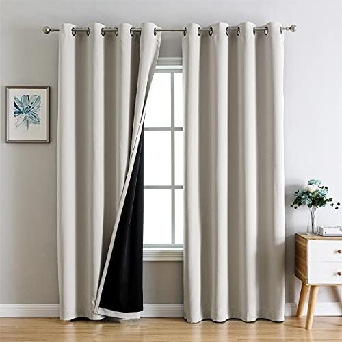 G2000 100% Blackout Curtains for Bedroom & Living Room - 84 Inch Long Beige Curtains with Room Darkening, Thermal Lined, Insulated, Light Blocking, Noise Reducing, 2 Panel Set