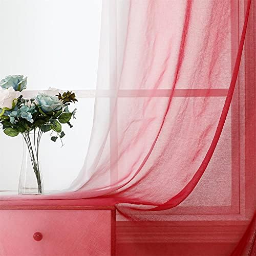 G2000 Sheer Red and White Ombre Curtains - 84 Inch Length, 2 Panels Set for Bedroom & Living Room Windows, Light Filtering, Grommet Curtains for Patio Sliding Glass Door