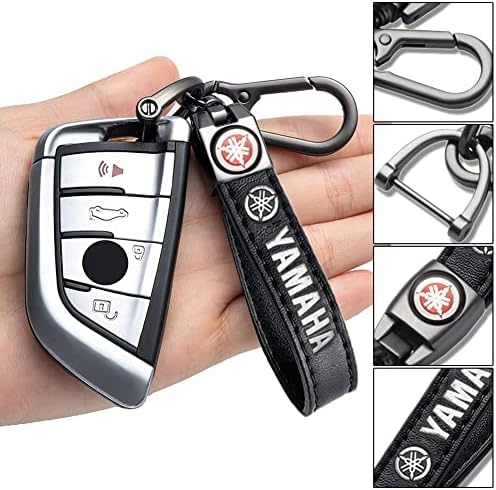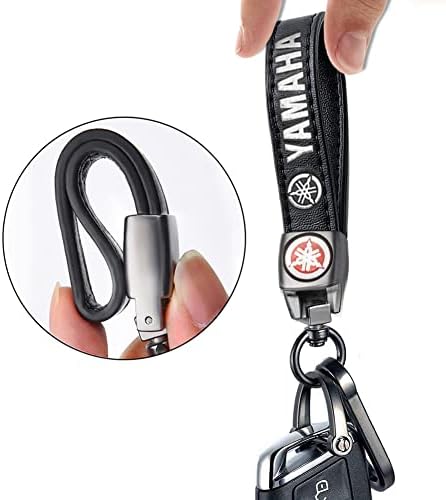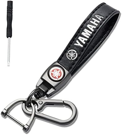 Sponsored Ad - Genuine Leather Keychain for YAMAHA Accessories, Wear-resistant Key Chain for Car Truck Motorcycle Bicycle, (Black)