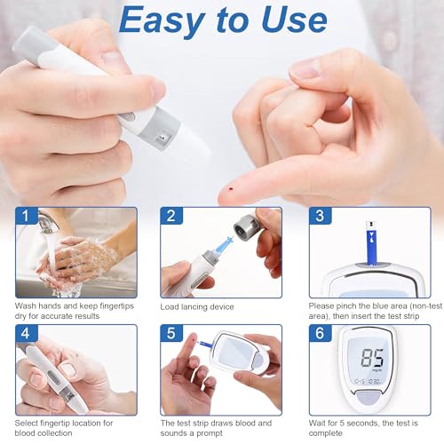 Glucose Monitor Kit, High Accuracy Blood Sugar Testing Kit with 100 Glucometer Strips & 100 Lancets, Larger-Screen Glucose Monitor with Lancing Devices, No Coding, Portable for Home or Travel