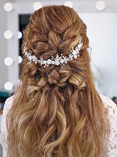 GORAIS Flower Bride Wedding Hair Vine Crystal Bridal Pearl Headpiece Prom Leaf Hair Accessories for Women and Girls