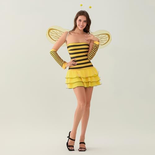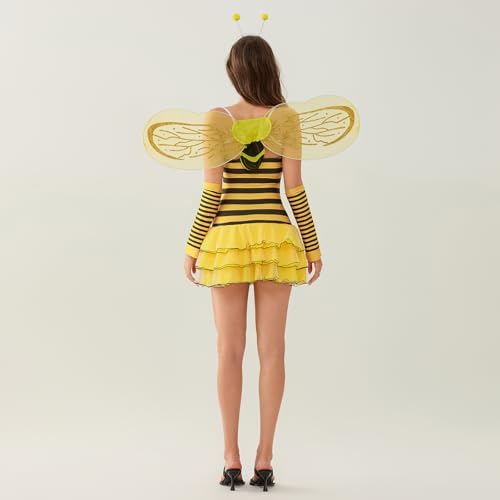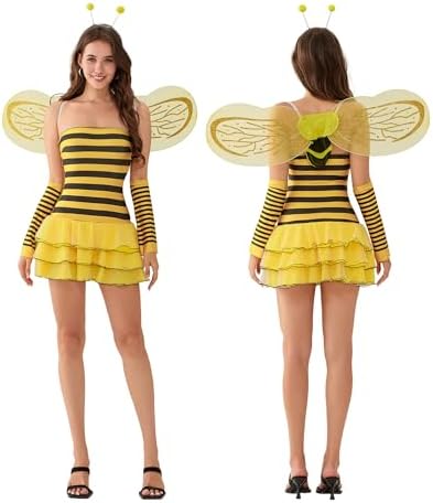 Women Halloween Costumes Outfit Sleeveless Ladybug Bee Adult Cosplay Christmas Dress Up with Headband Wings