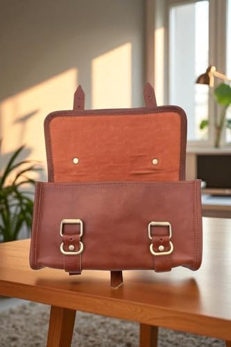 Sponsored Ad - Real Vintage Leather Motorcycle Saddle Bag with Rust-Free Buckles – 2 Side Panniers & 1 Tool Pouch for Swing Arm, Durable Waterproof Bike Storage (Brown Tool Pouch Only)