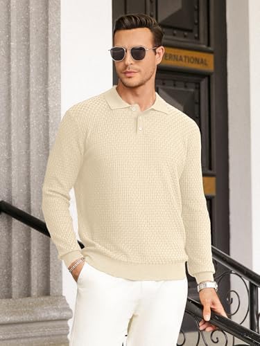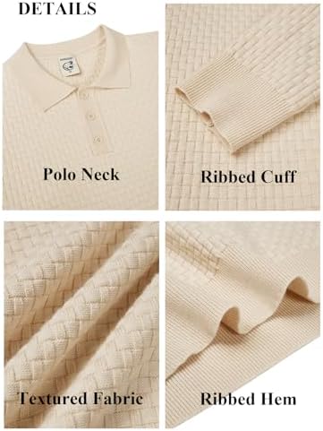 Sponsored Ad - Men's Knit Polo Shirts Long Sleeve Button Up Pullover Sweater Textured Casual Collared Tops