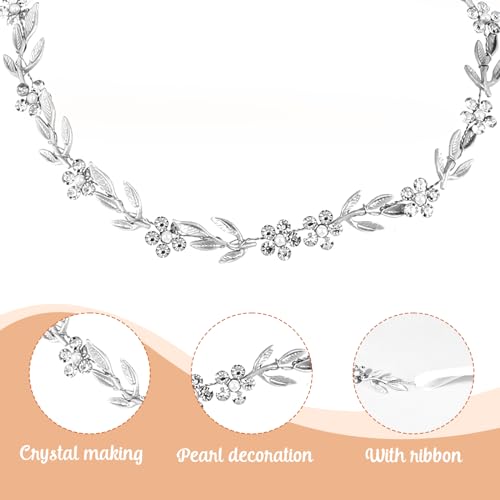Crystal Leaf Pearl Hair Vine Tiara Headpiece with Flower Headband for Wedding Brides and Women - Silver