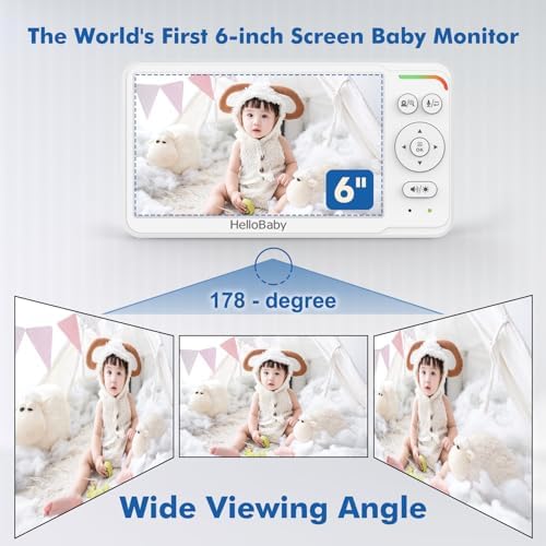Sponsored Ad - HelloBaby Baby Monitor 6" World First IPS Screen 30H Battery, Secure No WiFi, Pan Tilt Video Camera with Night Vision, VOX, 2-Way Talk, 1000ft, Portable Video Audio Monitor Ideal for Mo