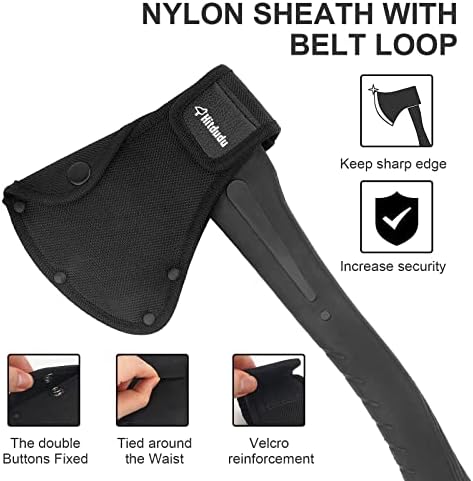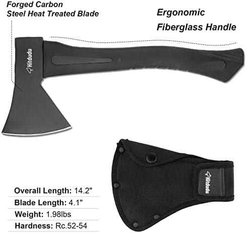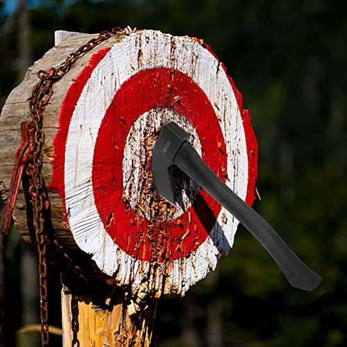 Camping Hatchet, 14" Camping Axe Throwing Axe for Outdoor Wood Splitting and Kindling, Forged Carbon Steel Heat Treated Survival Tool, Fiberglass Shock Reduction Handle with Anti-Slip Grip