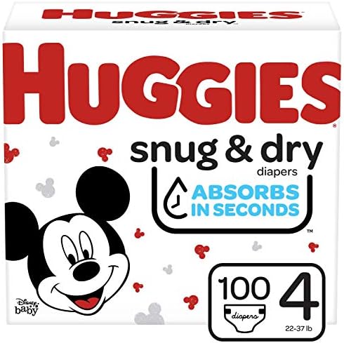 Snug & Dry Baby Diapers, Size 4, 100 Count, 22-37 lb (10-17 kg), Up to 12 Hrs Protection, Disney Mickey Mouse Designs
