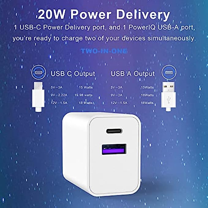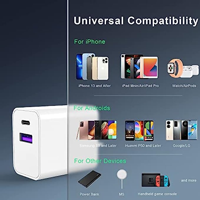 • 【Universal Compatibility】Seedato USB C block compatible for Seedato iPhone Charger Block equipped with a USB-C and USB-A Power Delivery ports can work with type c and USB cable. Seedato USB C wall charger compatible with Apple Watch Charger Series 7 / iPhoneSE3 13 /13 Mini /13 Pro /13 Pro Max /12 /12 Mini /12 Pro /12 Pro Max /iPhone 11 /11 Pro /11 Pro Max /iPhone XR /X /XS /XS Max /iPhone 8 Plus/iWatch 7/6/5/4; Samsung Galaxy S10 /S10e /S9 /S8 /Note 9 /Note 8 and all phones or tablets