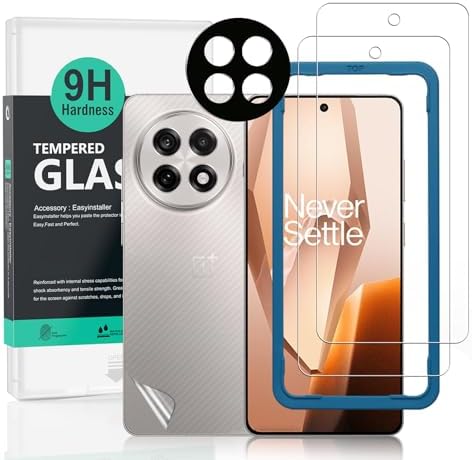Screen Protector For OnePlus 13R 5G 6.78"(2 Pack),9H Hardness Tempered Glass,With 1Pc Camera Lens Protector,1Pc Back Carbon Fiber Film,Easy to Install