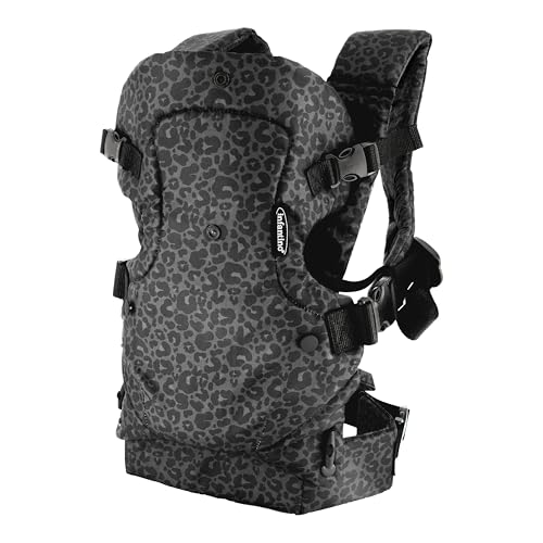Infantino Flip Advanced 4-in-1 Baby Carrier - Ergonomic, Convertible, Face-in and Face-Out Front and Back Baby Carrier for Newborn to Toddler 8-32 lbs, Black & Gray Leopard