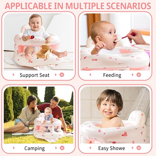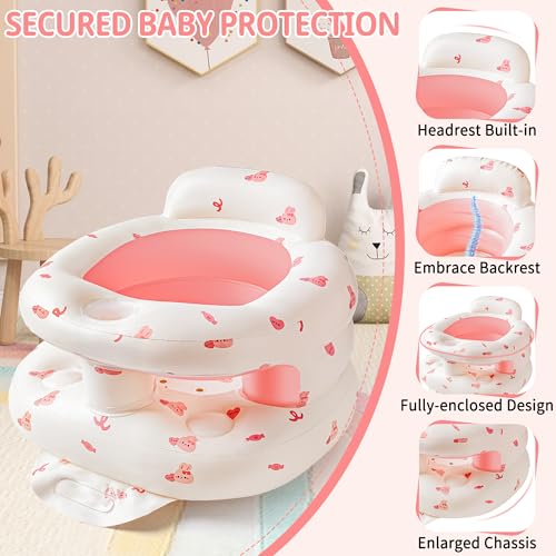 Inflatable Baby Seat with Full Enclosure, Comfortable Sit Me Up Baby Chair for Learning to Sit, Built in Air Pump Blow Up Infant Back Support Floor Seat for Babies 3 Months & Up (Bunny)